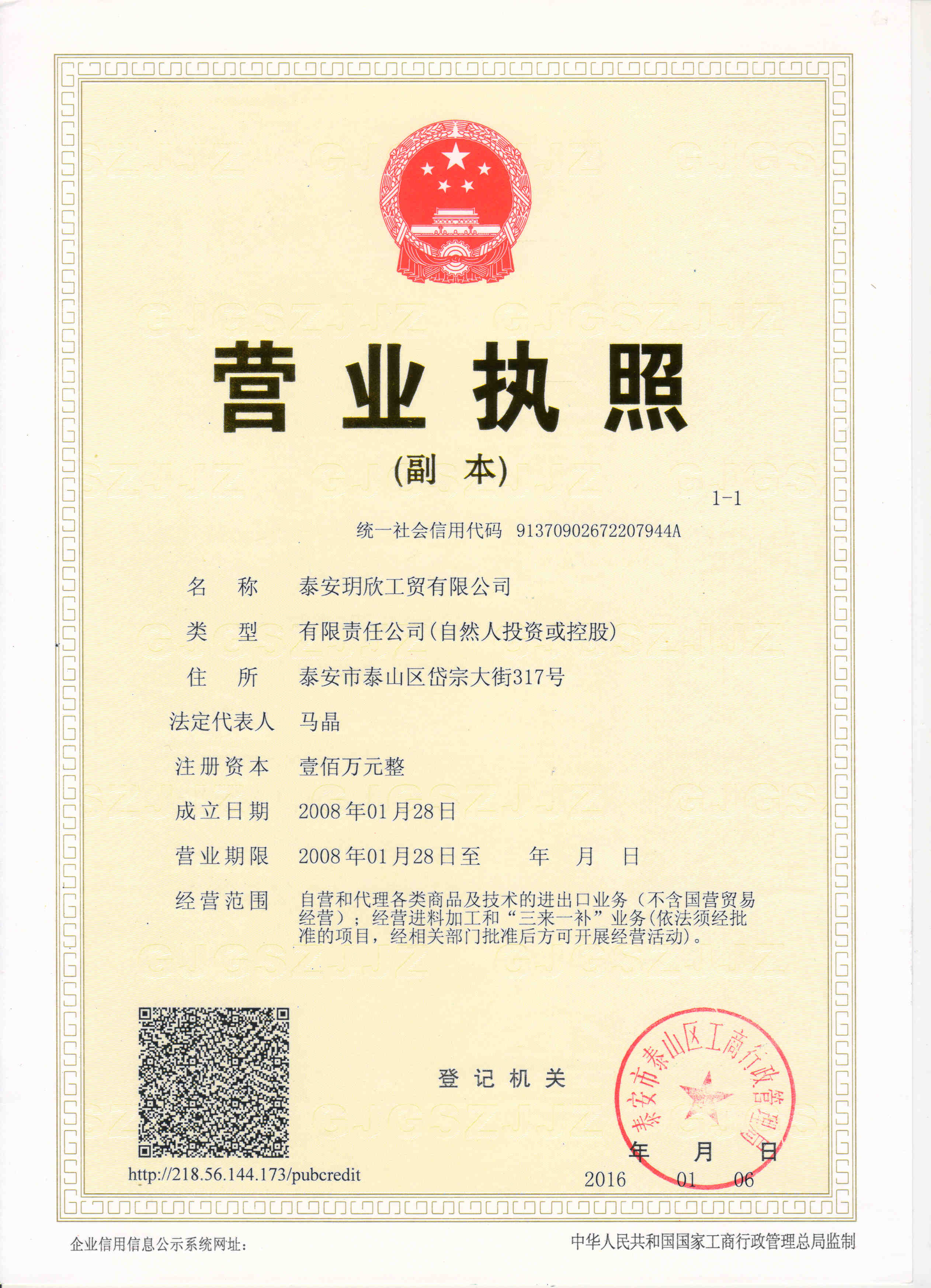 Address in Taian City : No.317 Daizong Street, Taian city, Shandong, China